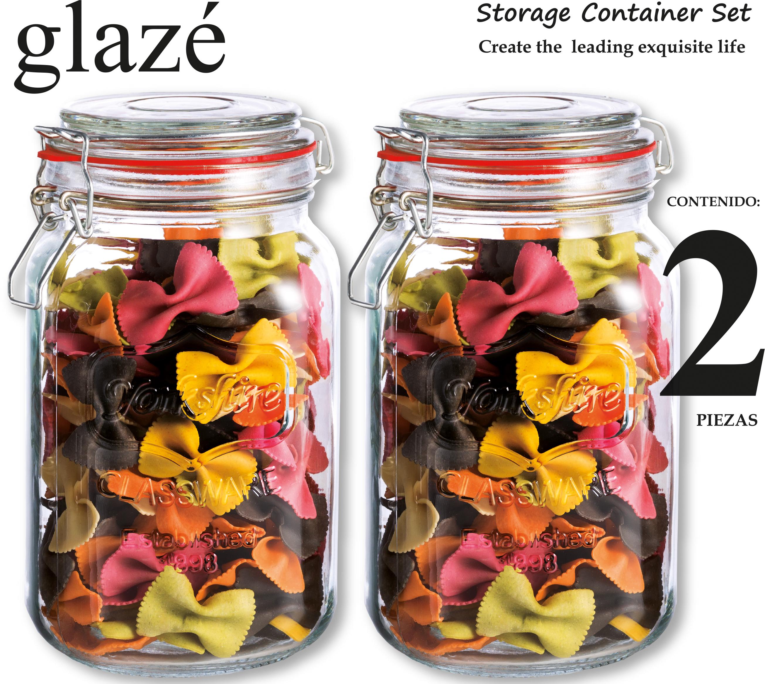 Set de 2 Contenedores de Vidrio Sellado con Tapa de Vidrio y Clip, Decorado “Yorkshire“ 1,480 ml.